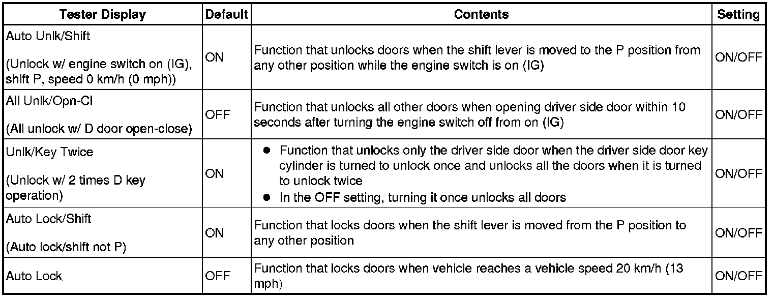 DOOR LOCK: POWER DOOR LOCK CONTROL SYSTEM: CUSTOMIZE PARAMETERS