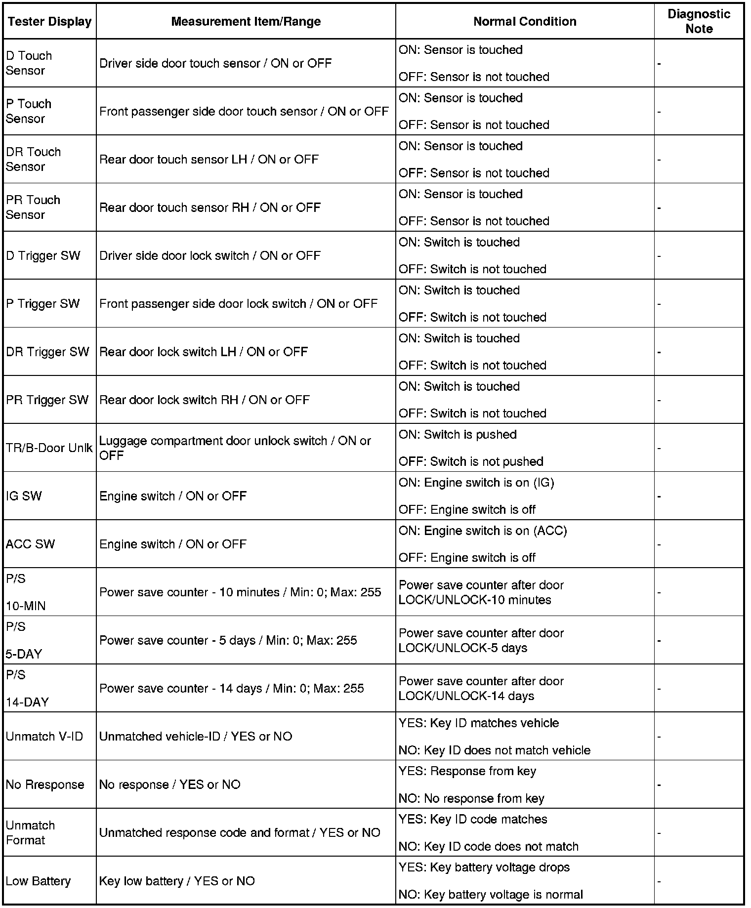 DOOR LOCK: SMART ACCESS SYSTEM WITH PUSH-BUTTON START: DATA LIST / ACTIVE TEST