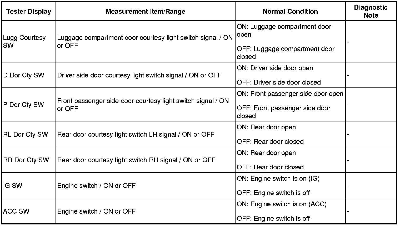 HINT: Using Techstream Data List allows switch, sensor, actuator and other item values to be read without removing any parts. Reading the Data List relay in troubleshooting is one way to save time.