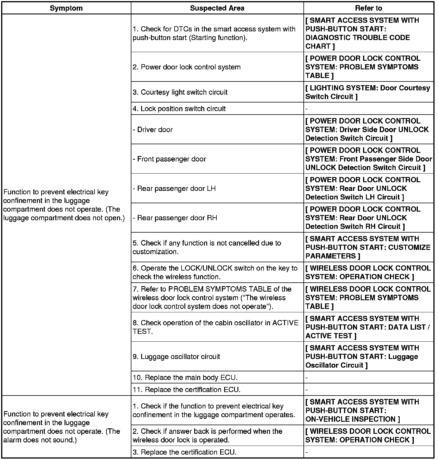 - Use the table below to help determine the cause of the problem symptoms. The potential causes of the symptoms are listed in order of probability in the "Suspected area" column of the table. Check each symptom by checking the suspected areas in the order they are listed. Replace parts as necessary.