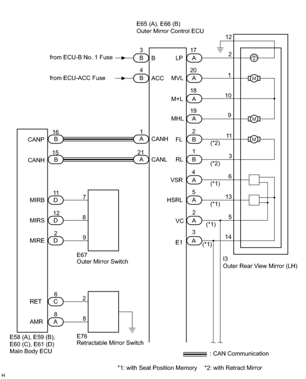 - The mirror ECU stores the outside rear view mirror position in its memory.