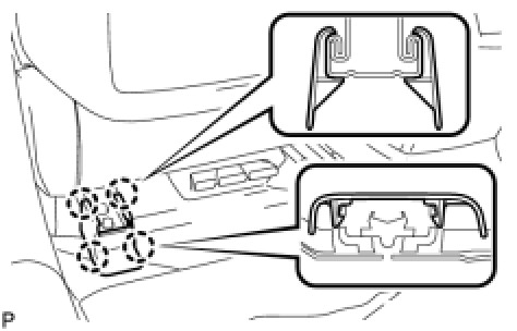 (a) Using a screwdriver, disengage the 4 claws and remove the front seat rear inner track bracket cover.