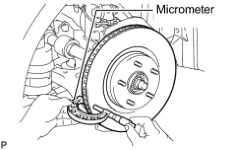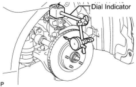 (b) Using a dial indicator, measure the disc runout 10 mm (0.39 in.) away from the outer edge of the front disc.