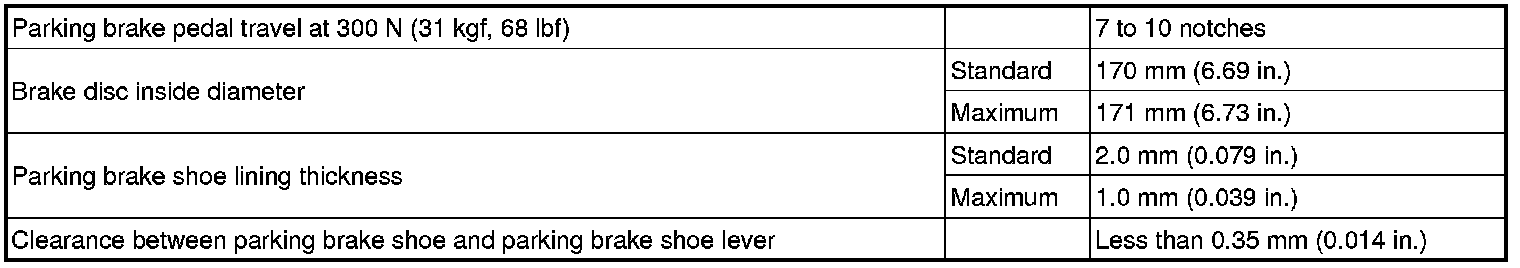 SERVICE SPECIFICATIONS: PARKING BRAKE: SERVICE DATA