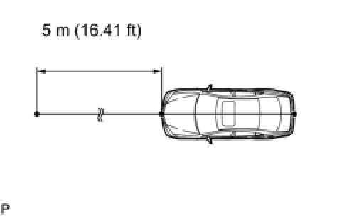 HINT: If the distance is 0 m (0 ft.), the sensor cannot detect the target. Reconfirm that there is no metal in the specified area in front of the vehicle (refer to the NOTICE at the beginning of this adjustment procedure).