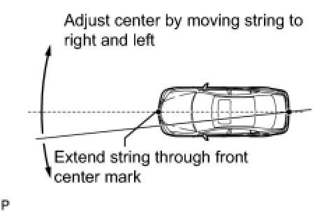 (1) Hang the string (with weight) from the center of the vehicle's rear emblem. Mark the vehicle's rear center point on the ground. Repeat the same procedure for the front of the vehicle.