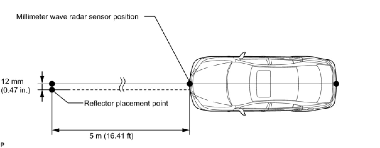 (3) Using a tape measure, measure 12 mm (0.47 in.) to the left of the 5 m (16.41 ft) position. Place the reflector at that position.
