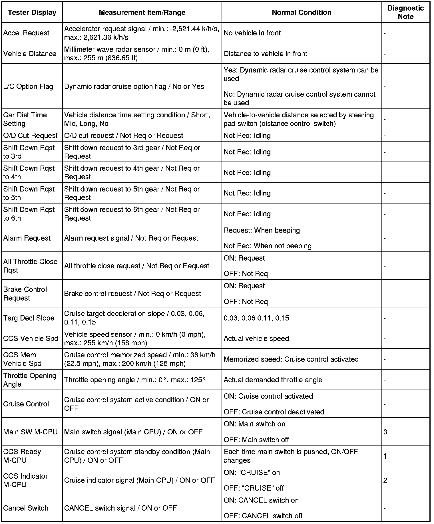 CRUISE CONTROL: DYNAMIC RADAR CRUISE CONTROL SYSTEM: DATA LIST / ACTIVE TEST