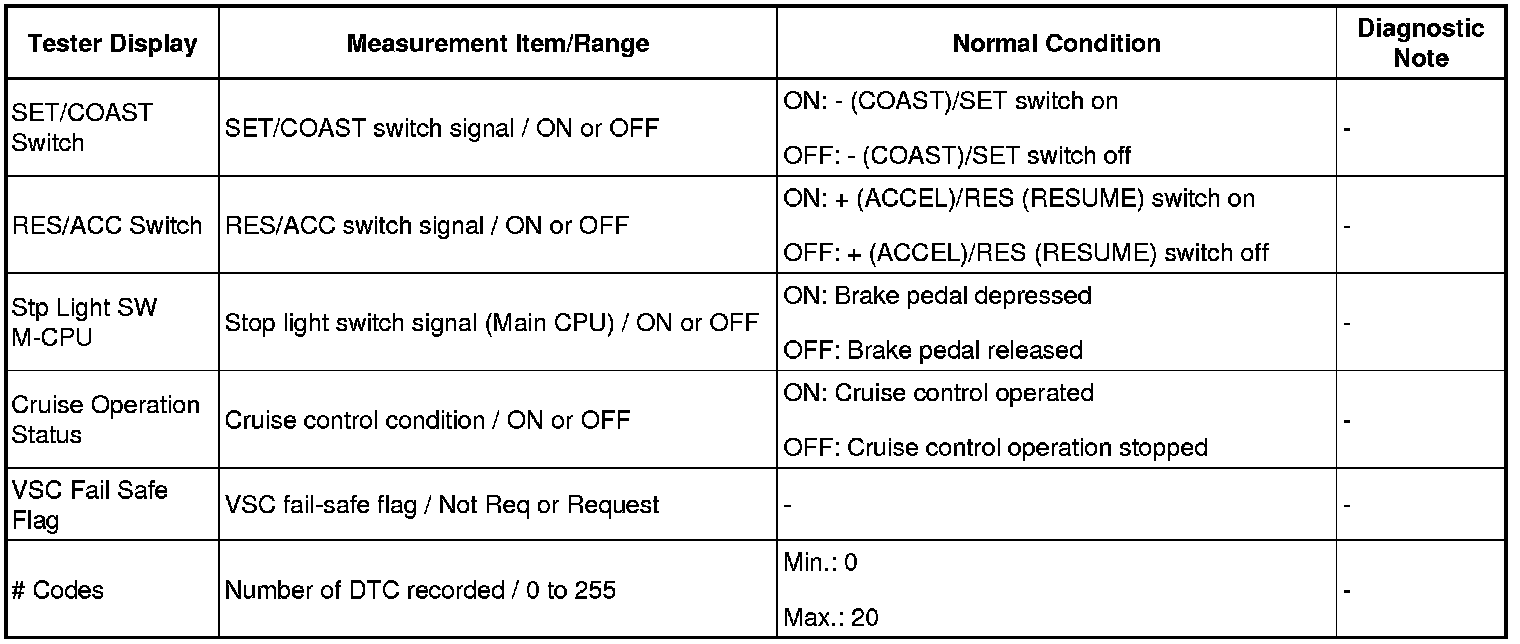 HINT: Using Techstream to read the Data List allows the values or states of switches, sensors, actuators and other items to be read without removing any parts. This non-intrusive inspection can be very useful because intermittent conditions or signals may be discovered before parts or wiring is disturbed. Reading the Data List information early in troubleshooting is one way to save diagnostic time.