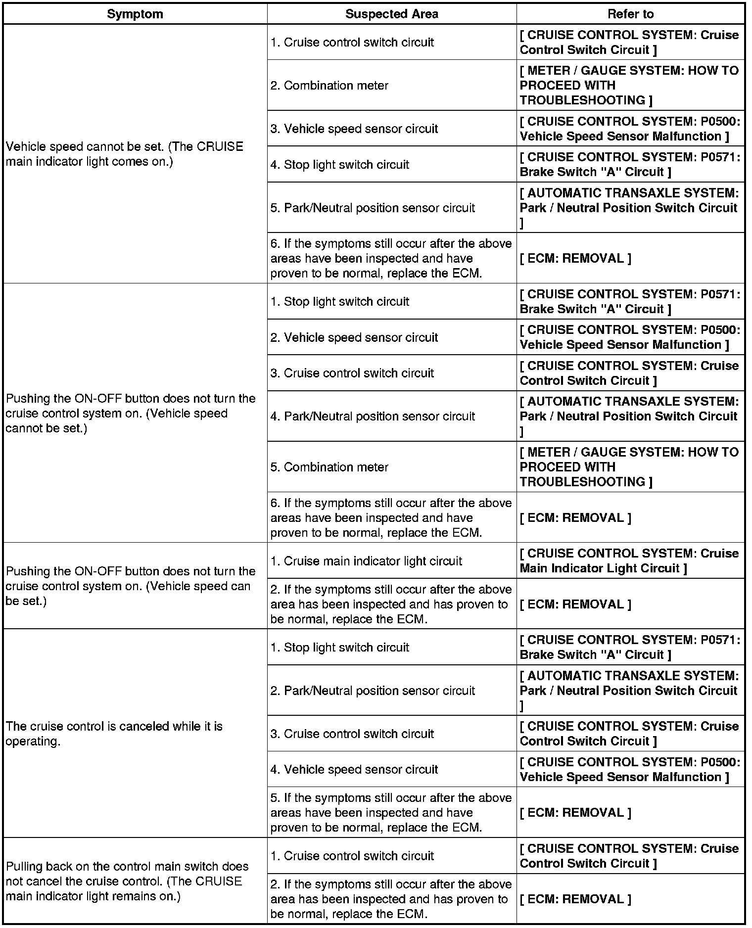 HINT: Be sure to perform the SYMPTOM SIMULATION procedure before replacing the ECM. If these symptoms do not persist, the cause of the problem may be a poor intermittent electrical contact (open or short) of a wire harness or connector.