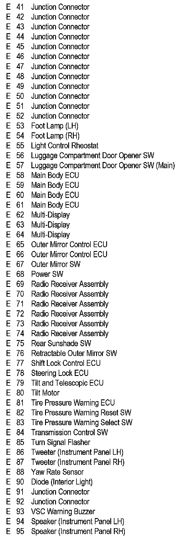 Position of Parts In Instrument Panel