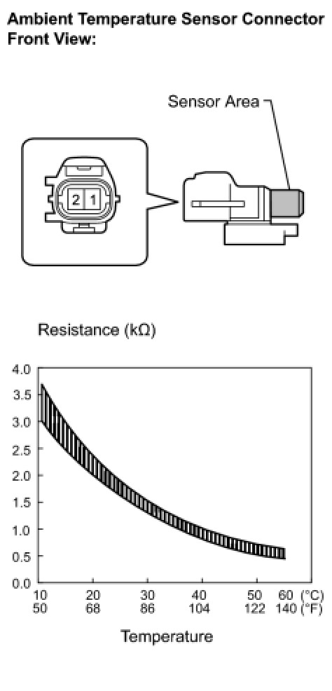 If the resistance is not as specified, replace the ambient temperature sensor.