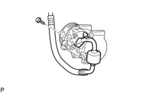 (a) Remove the bolt and disconnect the No. 1 cooler refrigerant discharge hose from the compressor and pulley.