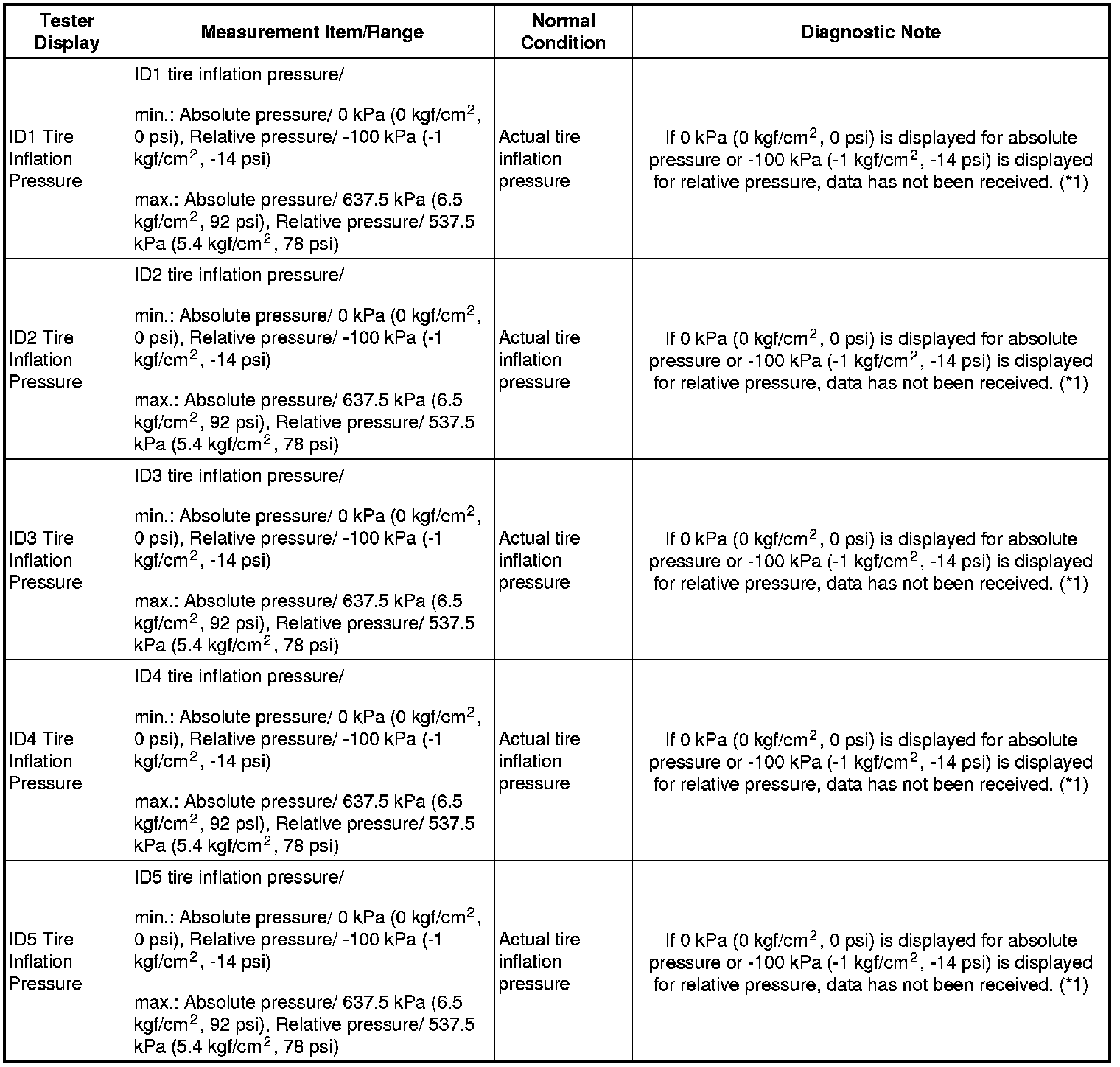 - If the tire pressure values are not displayed after a few minutes, the IDs may be incorrect or the system may have a malfunction.
