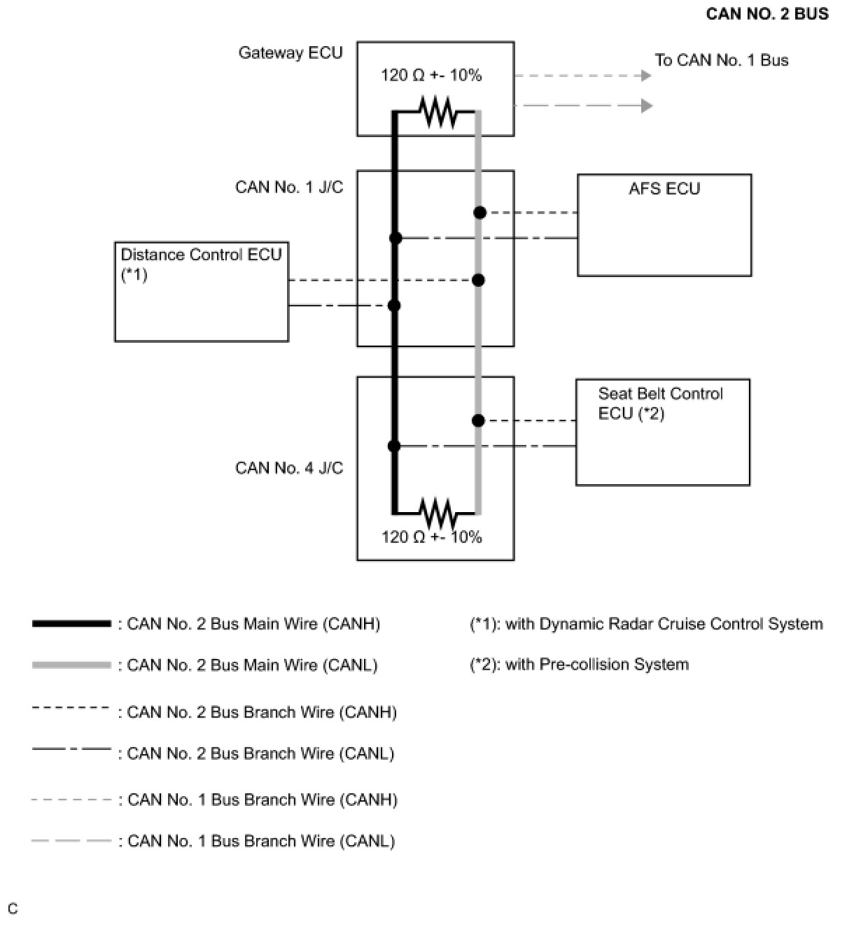(1) The main bus wire is a wire harness between the two terminating resistors on the bus (communication wire). This is the main bus in the CAN communication system.