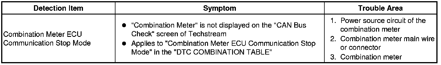 CAN COMMUNICATION SYSTEM: Combination Meter ECU Communication Stop Mode