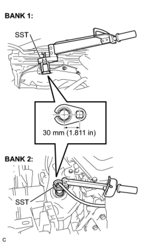 NOTE: The torque shown above should be used for tightening without using SST. When the SST is used for tightening, the torque should be calculated based on the length of the SST Service Precautions.
