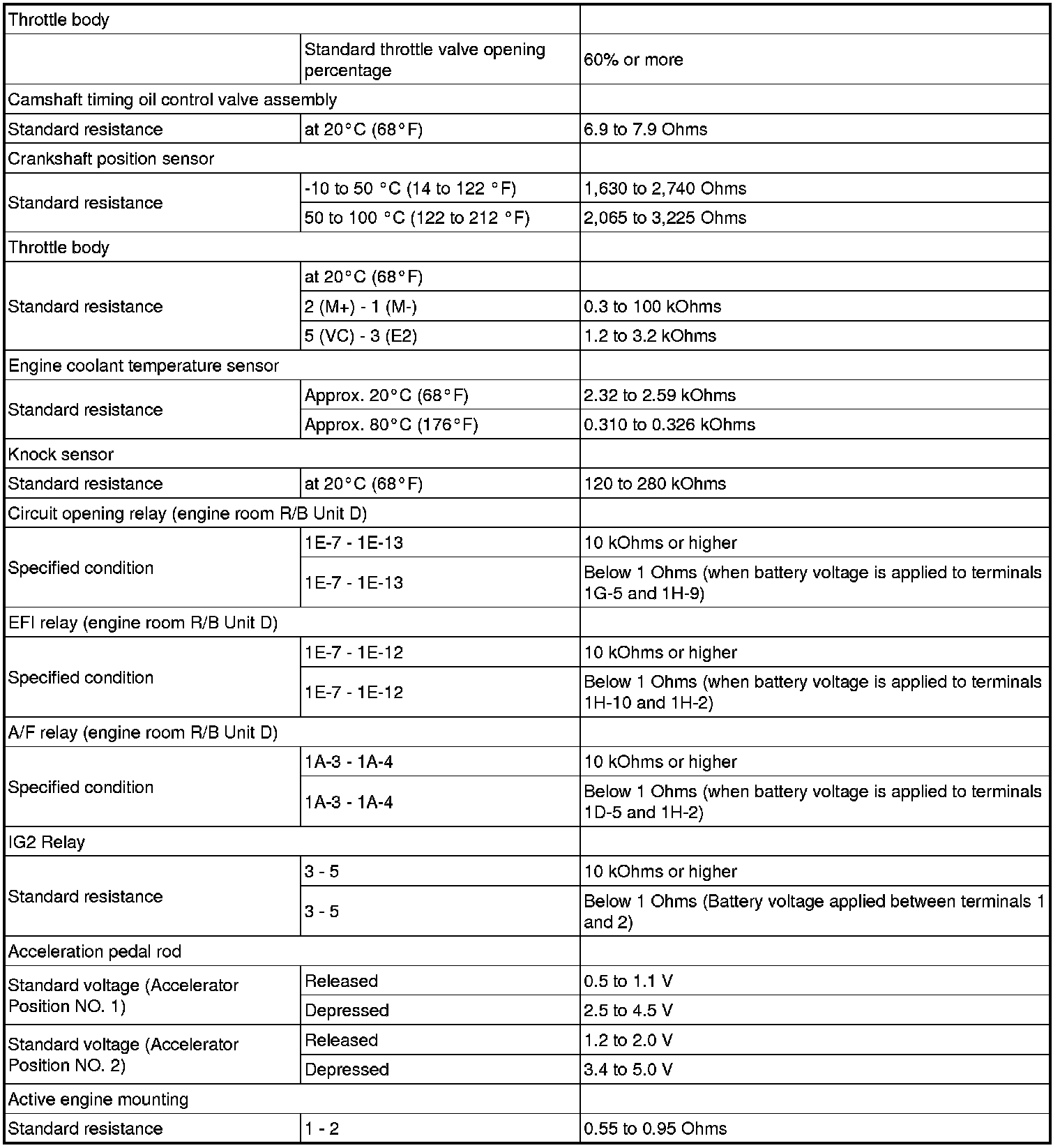 SERVICE SPECIFICATIONS: 2GR-FE ENGINE CONTROL SYSTEM: SERVICE DATA
