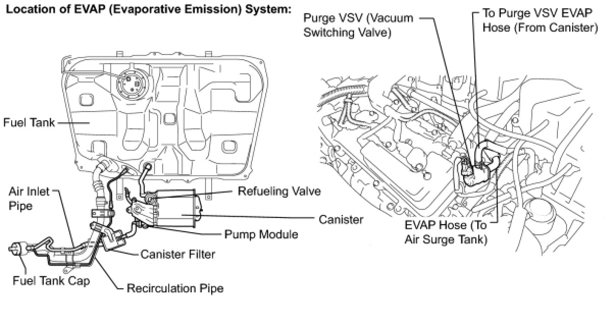 B -- CHECK EVAP HOSE (PURGE VSV - AIR SURGE TANK)