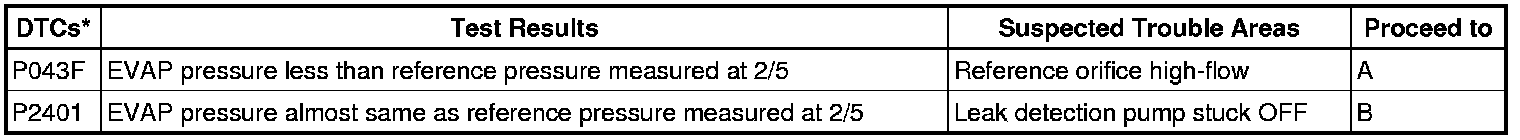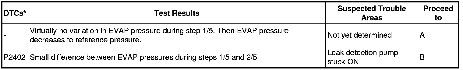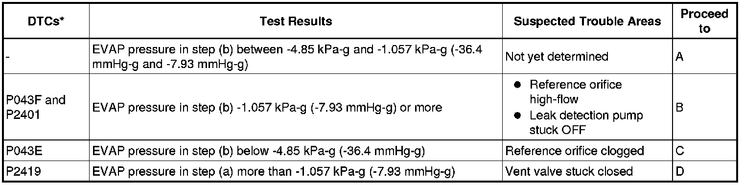 NOTE: If the reference pressure difference between the first and second checks is greater than the specification, all the DTCs relating to the reference pressure (P043E, P043F, P2401, P2402 and P2419) are stored.