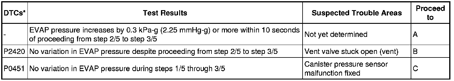- (b) Check the EVAP pressure again when it has stabilized. This pressure is the reference pressure (Step "B").
