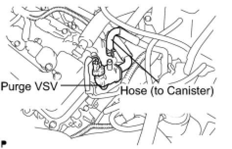 (b) Disconnect the hose (connected to the canister) from the purge VSV.