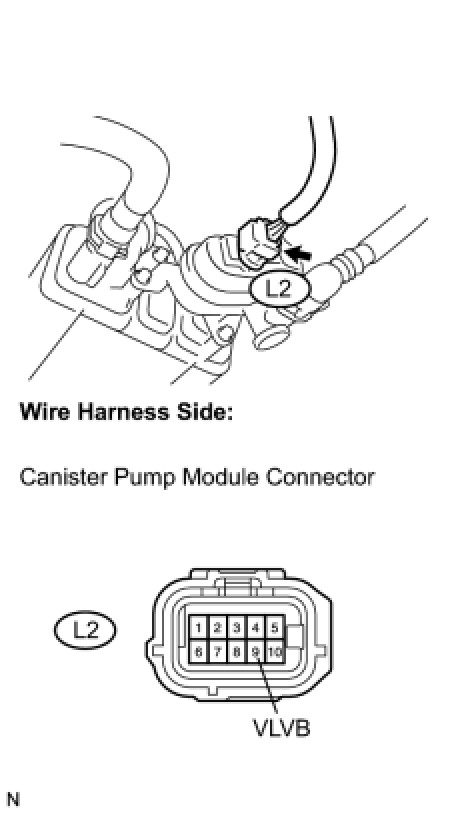(d) Measure the voltage between the VLVB terminal of the canister pump module connector and body ground.