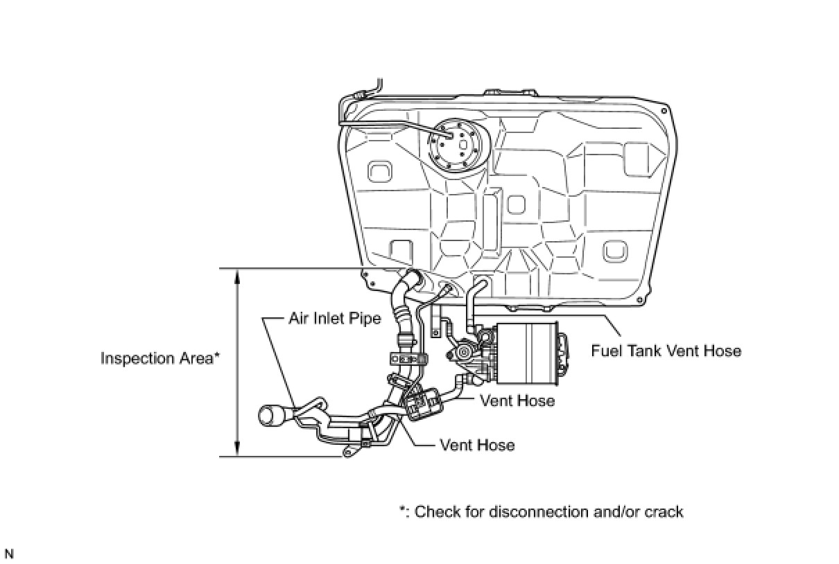 NOTE: In this vehicle's EVAP system, turning ON the vent valve does not seal off the EVAP system. To check for leaks in the EVAP system, disconnect the air inlet vent hose and apply pressure from the atmospheric side of the canister.