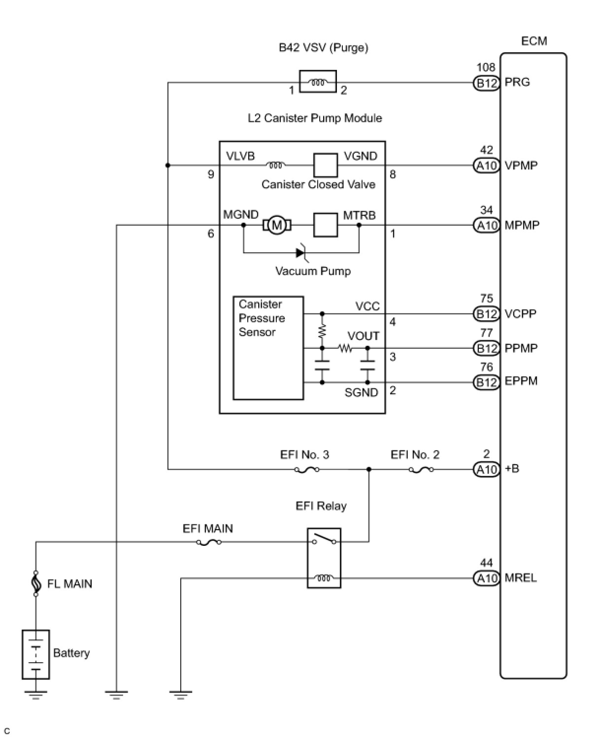 B -- INSPECT CANISTER PUMP MODULE (POWER SOURCE FOR VENT VALVE)