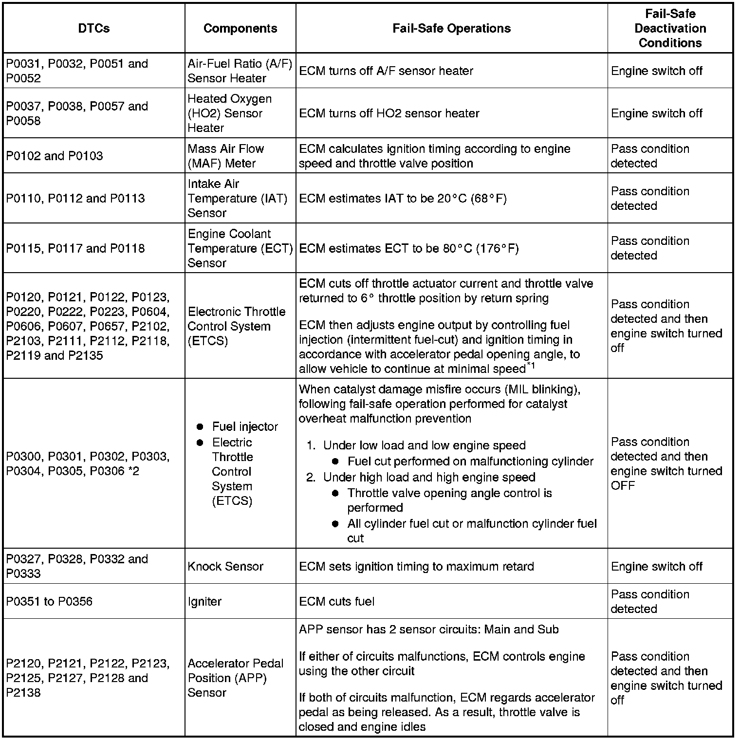 *2: Misfire related fail-safe operations occur when catalyst overheat malfunction occur.