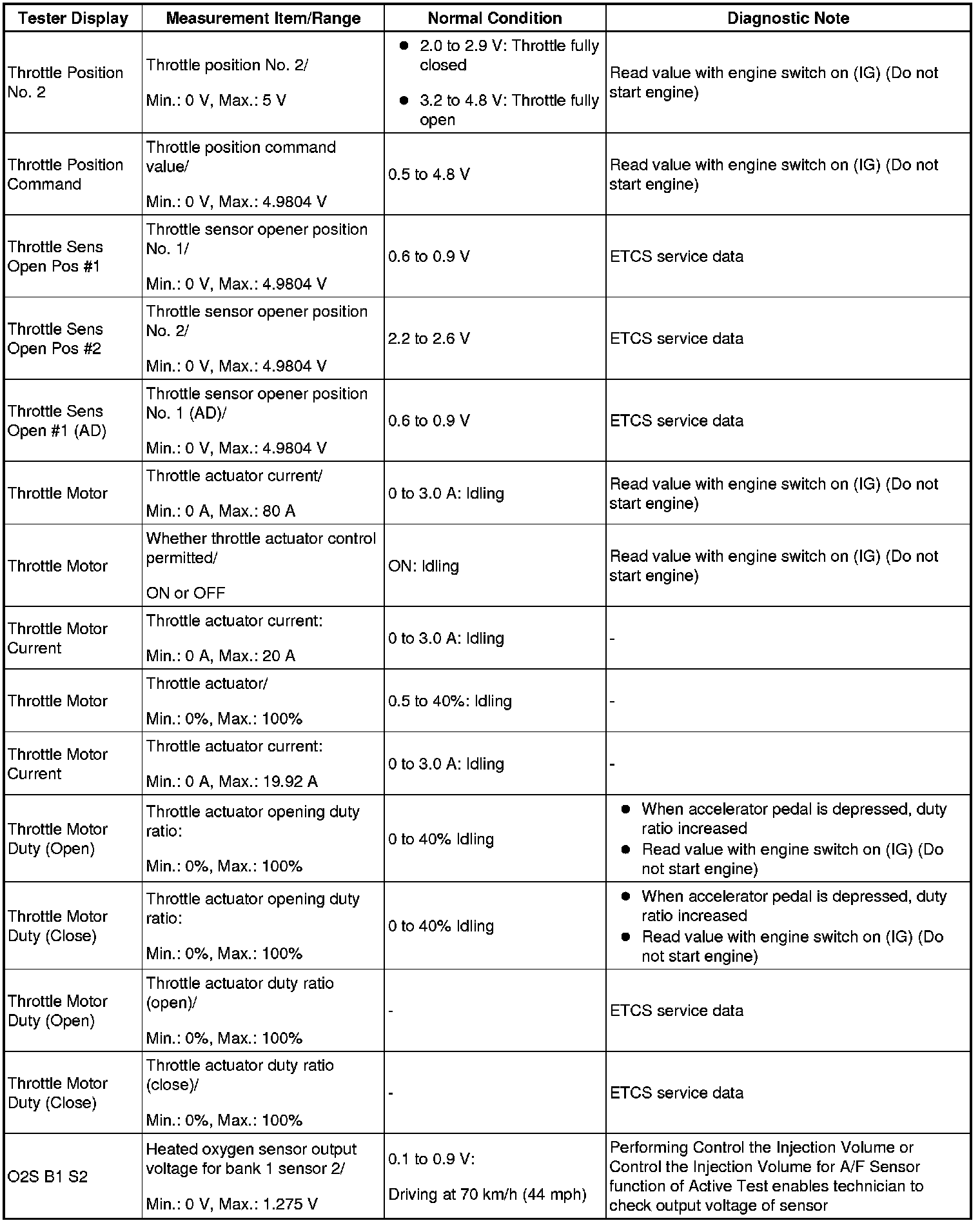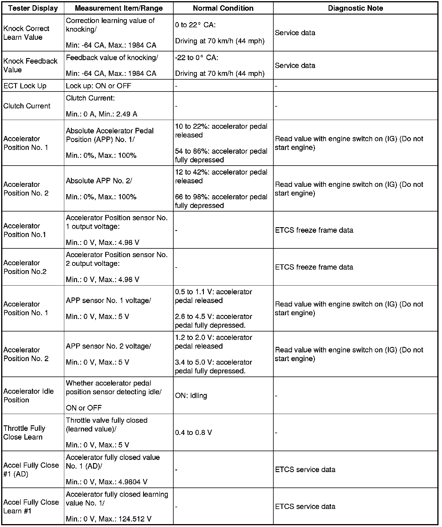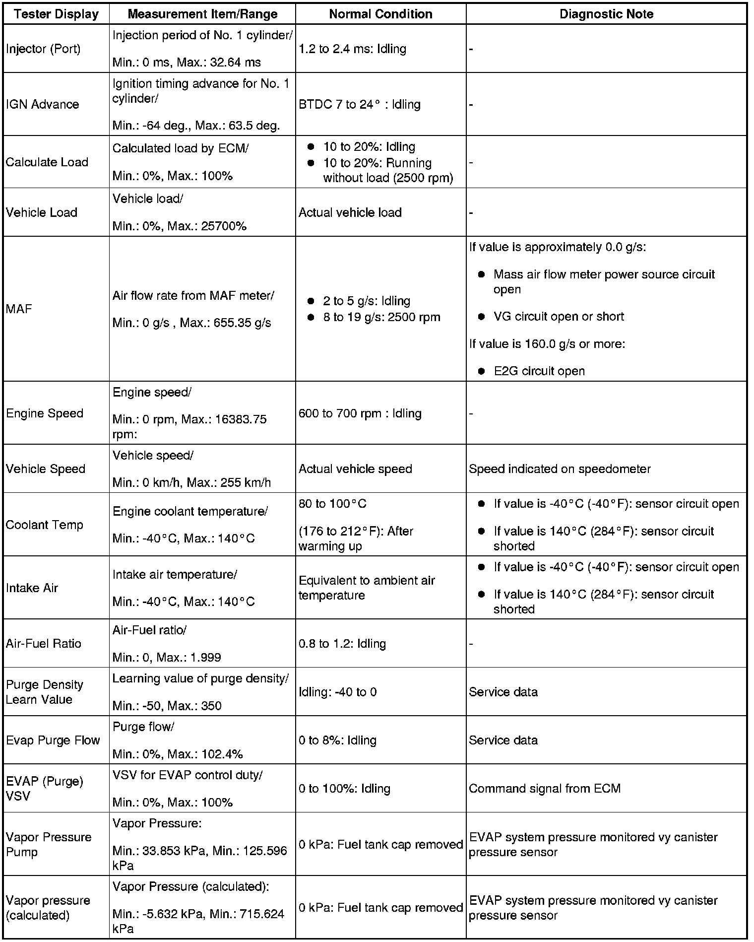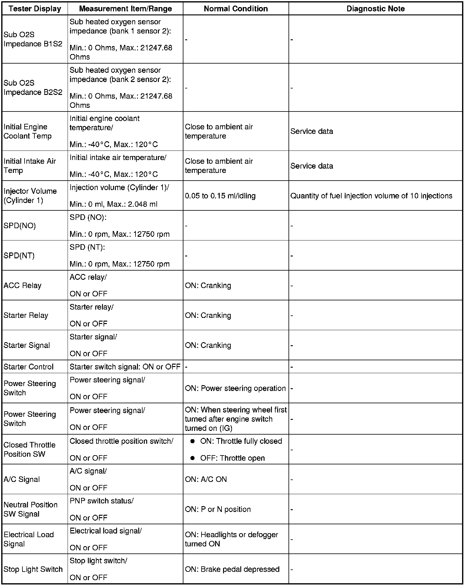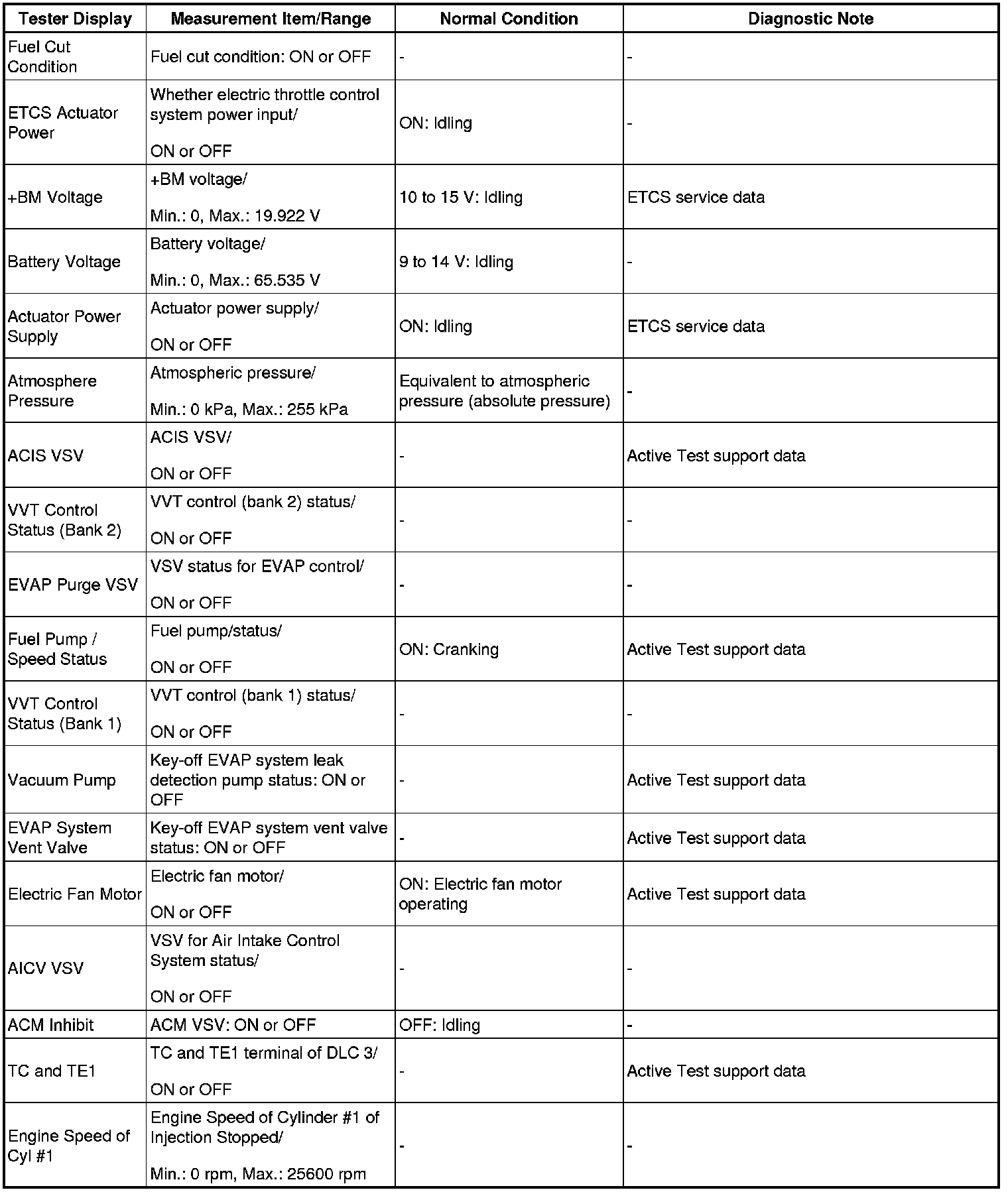 HINT: By reading the Data List displayed on Techstream, you can check values, including those of the switches, sensors, and actuators, without removing any parts. Reading the Data List as the first step in troubleshooting is one method of shortening diagnostic time.