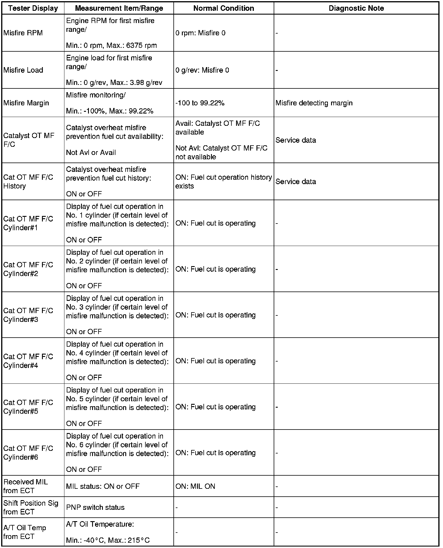NOTE: *1: If the display of the Data List's Catalyst OT MF F/C item is Not Avl, perform this Active Test with the vehicle stopped and the engine idling. If the display of the Data List's Catalyst OT MF F/C item is Avail, perform this Active Test as described below.