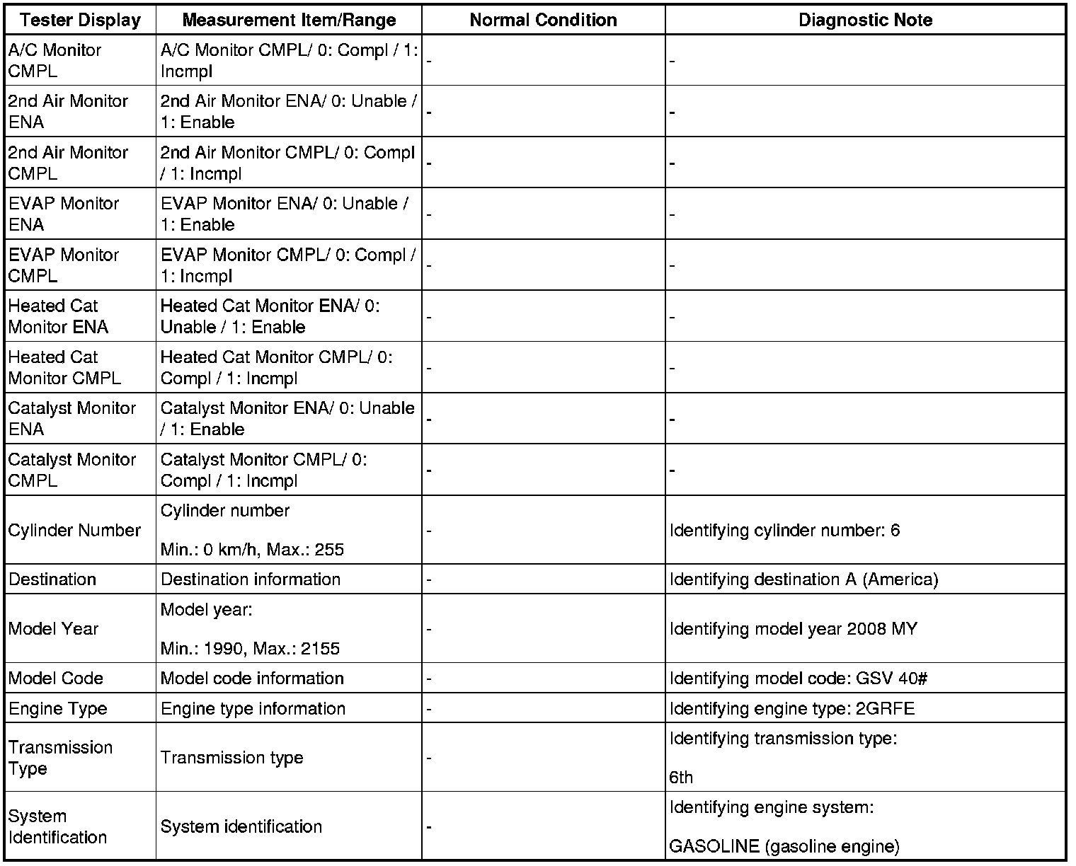 2GR-FE ENGINE CONTROL SYSTEM: SFI SYSTEM: DATA LIST / ACTIVE TEST