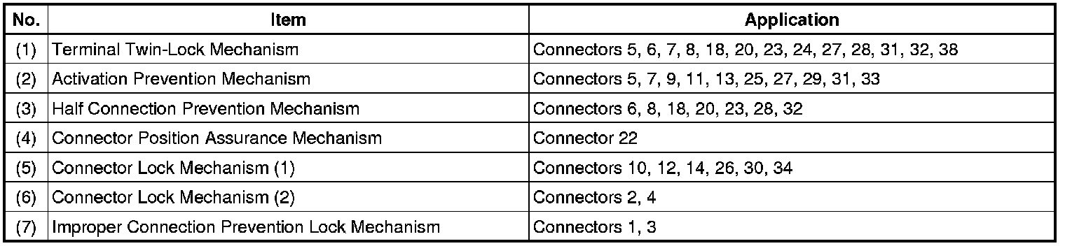 All connectors with an activation prevention mechanism contain a short spring plate. When these connectors are disconnected, the short spring plate creates a short circuit by automatically connecting the positive (+) and negative (-) terminals of the squib.