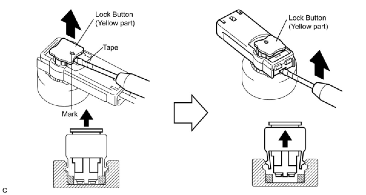 (b) Push down the housing lock (white part) again and disconnect the connector.