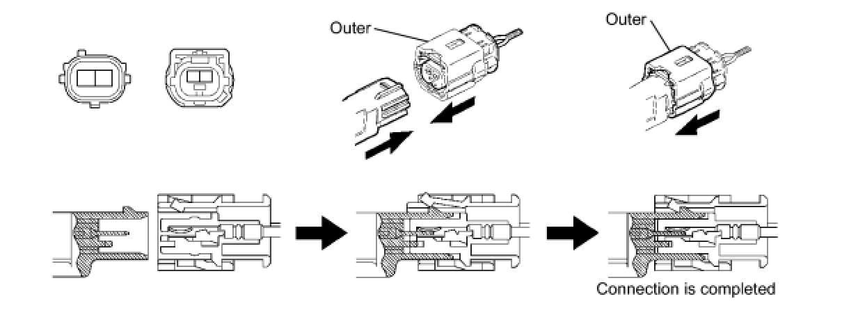 (a) Connect the connector as shown in the illustration (When locking, make sure that the outer returns to its original position and a click sound can be heard).