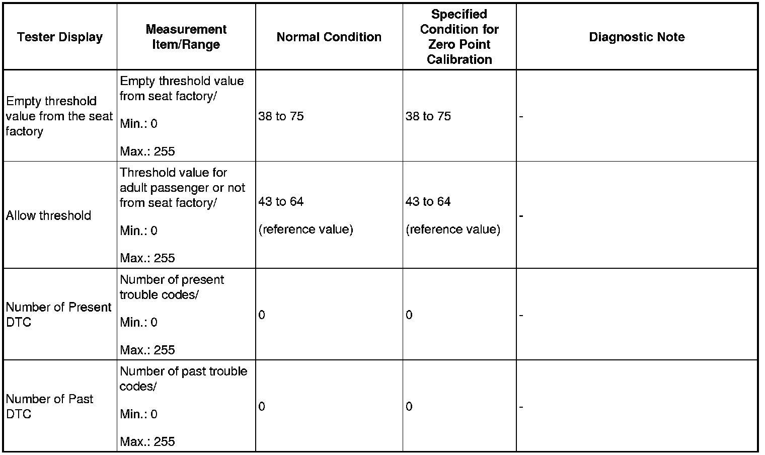 1. DATA LIST FOR OCCUPANT CLASSIFICATION ECU