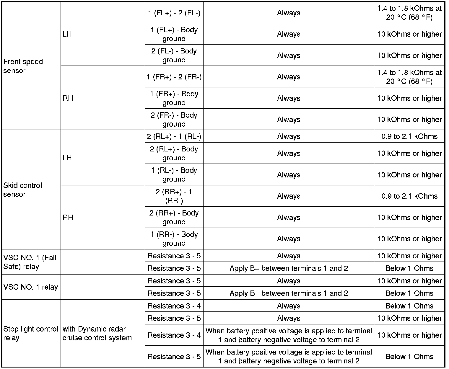 SERVICE SPECIFICATIONS: BRAKE CONTROL: SERVICE DATA