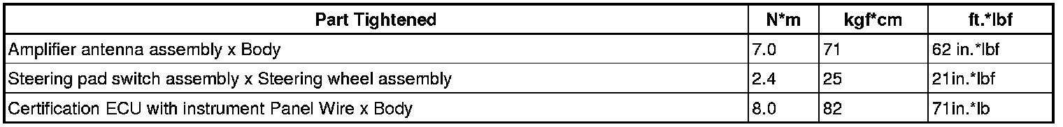 TORQUE SPECIFICATIONS