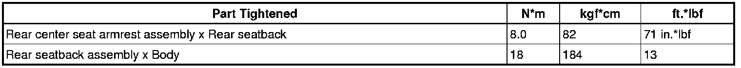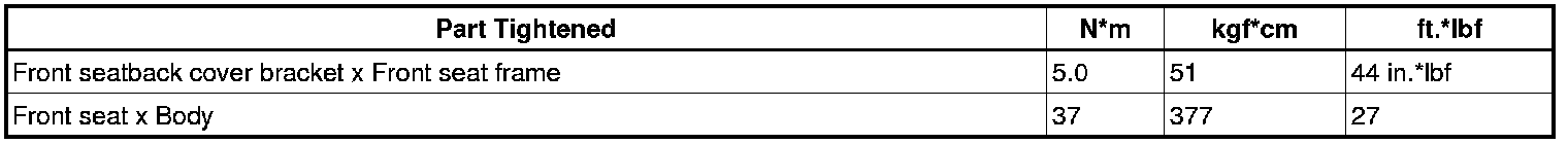 SERVICE SPECIFICATIONS: SEAT: TORQUE SPECIFICATIONS