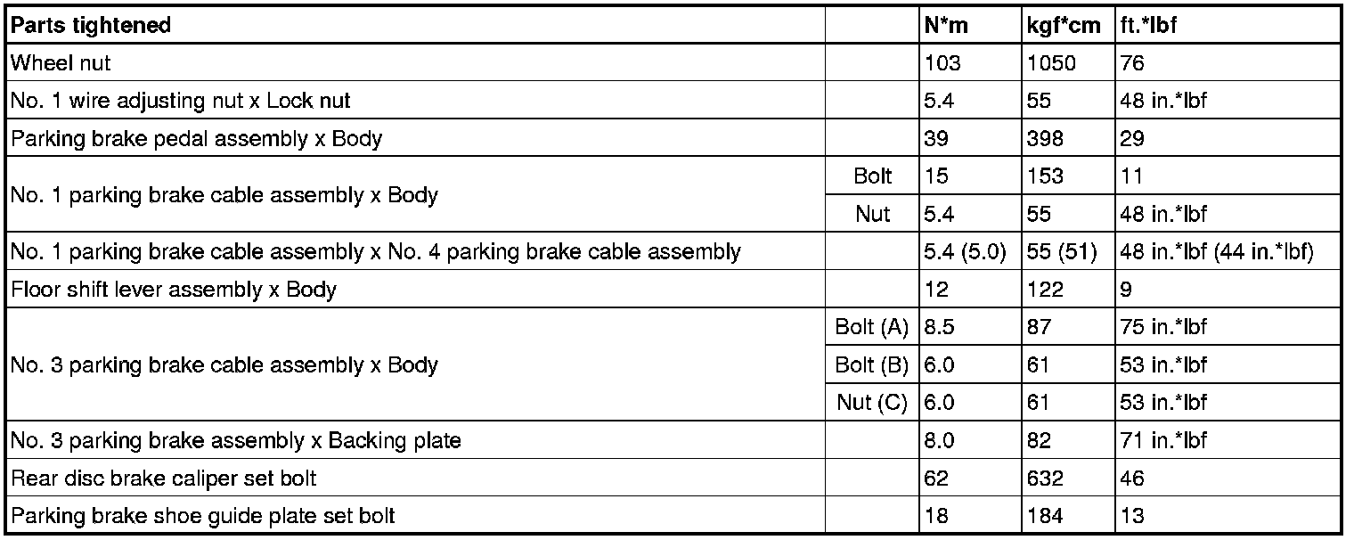 SERVICE SPECIFICATIONS: PARKING BRAKE: TORQUE SPECIFICATIONS