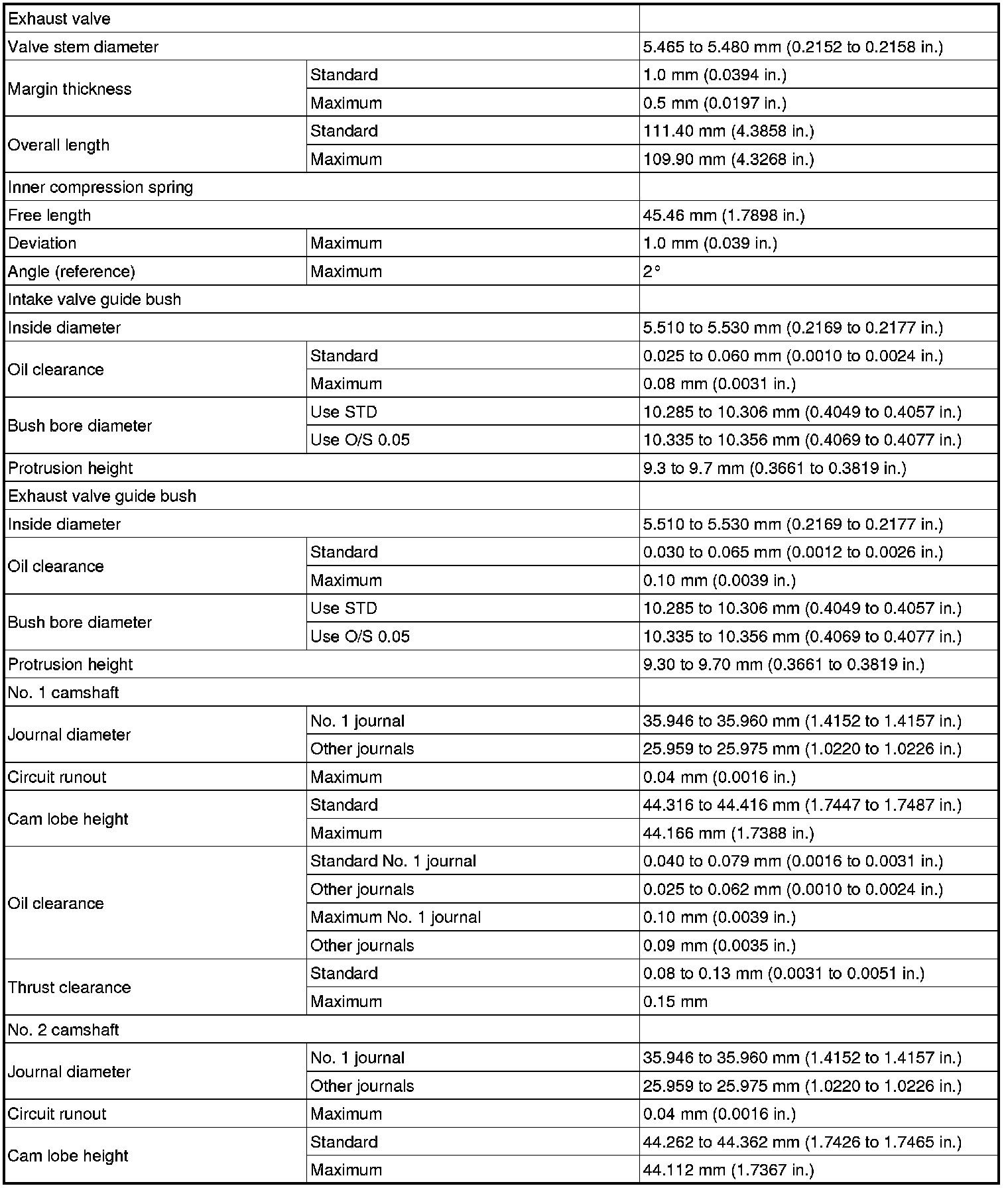 SERVICE SPECIFICATIONS: 2GR-FE ENGINE MECHANICAL: SERVICE DATA
