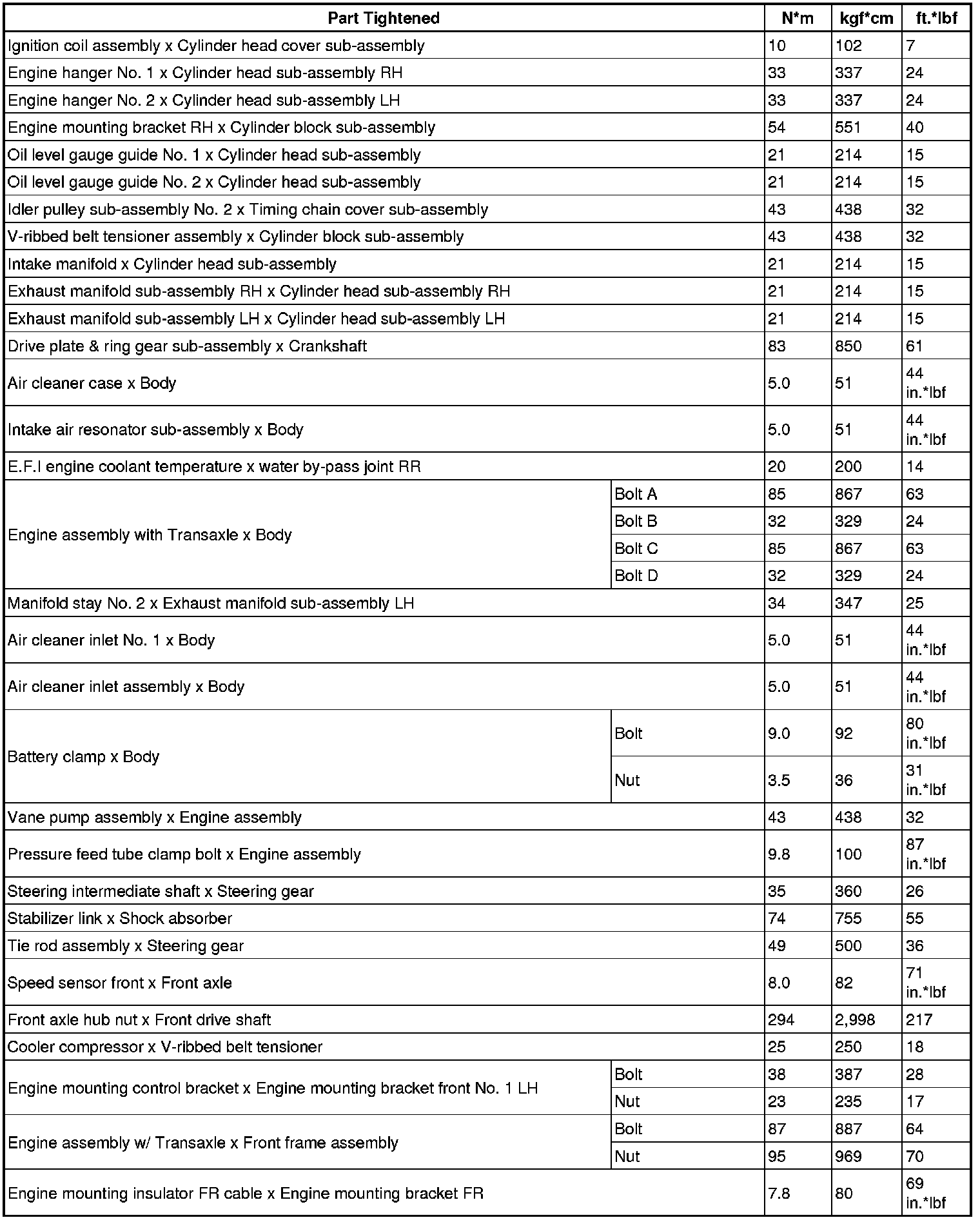 Torque Specifications