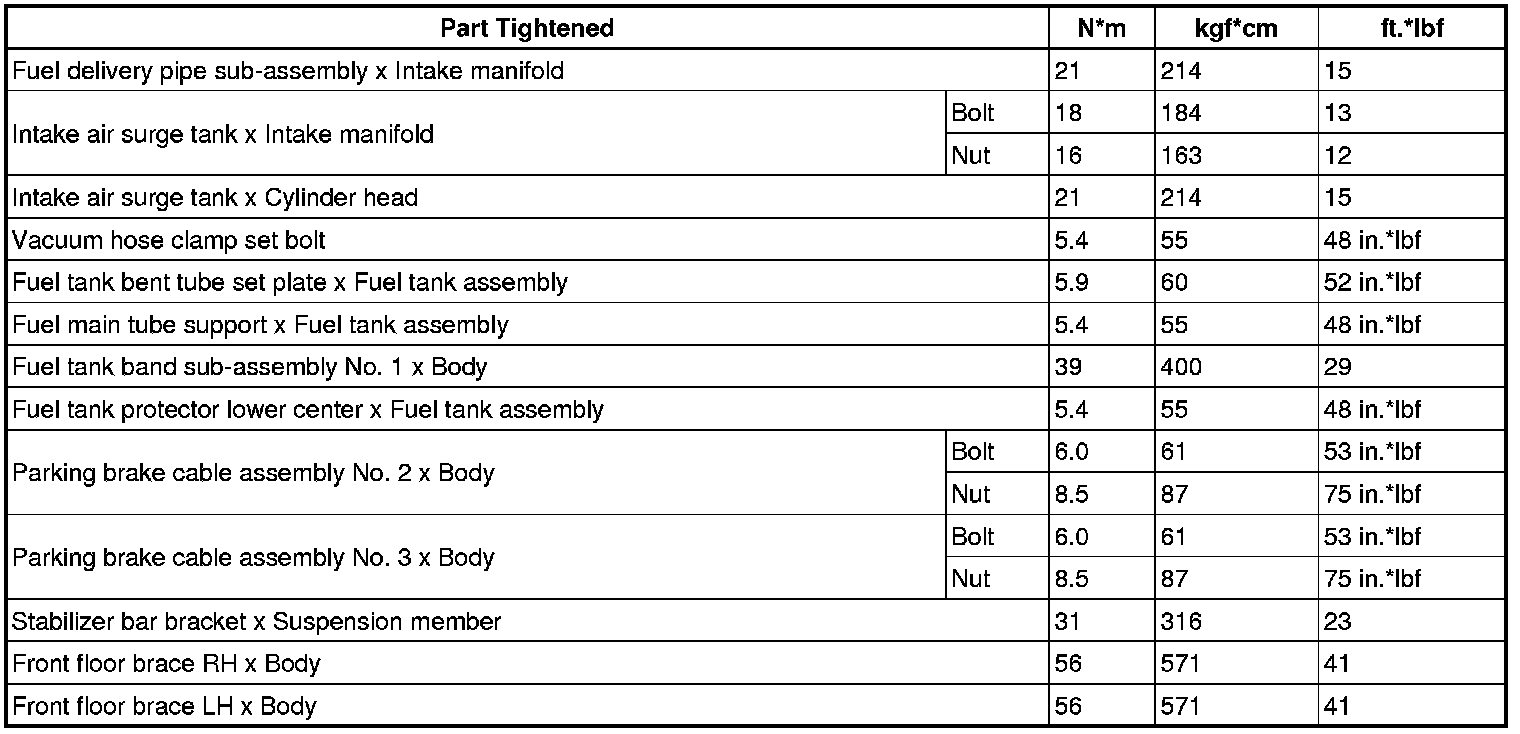 SERVICE SPECIFICATIONS: 2GR-FE FUEL: TORQUE SPECIFICATIONS