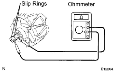 (1) Using an ohmmeter, measure the resistance between the slip rings.