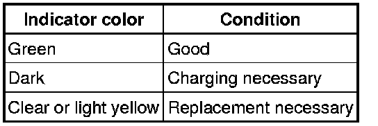 (1) If the electrolyte level is low, replace the battery (or add distilled water) and check the charging system.