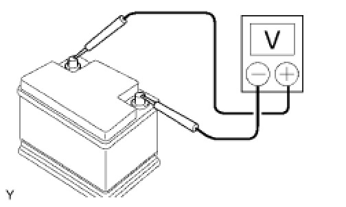 (c) Measure the battery voltage between the negative (-) and positive (+) terminals of the battery.