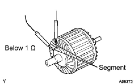 (1) Using an ohmmeter, measure the resistance between the segments of the commutator.