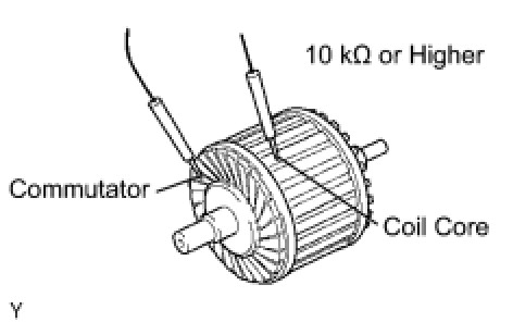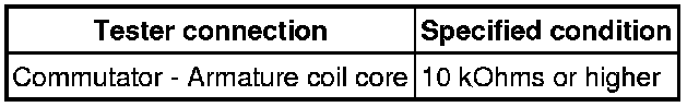 (2) Using an ohmmeter, measure the resistance between the commutator and armature coil core.