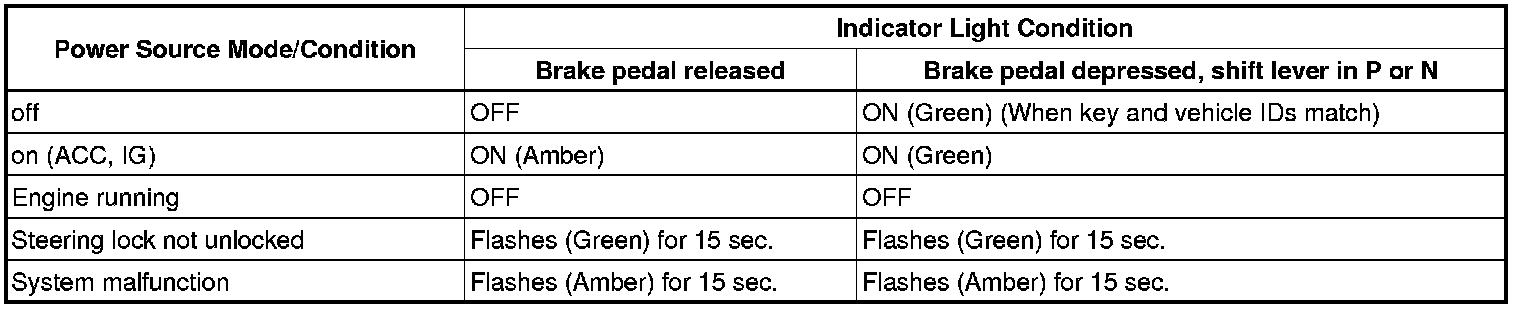 Engine start conditions or system malfunctions can be checked by the status of the engine switch indicator light.